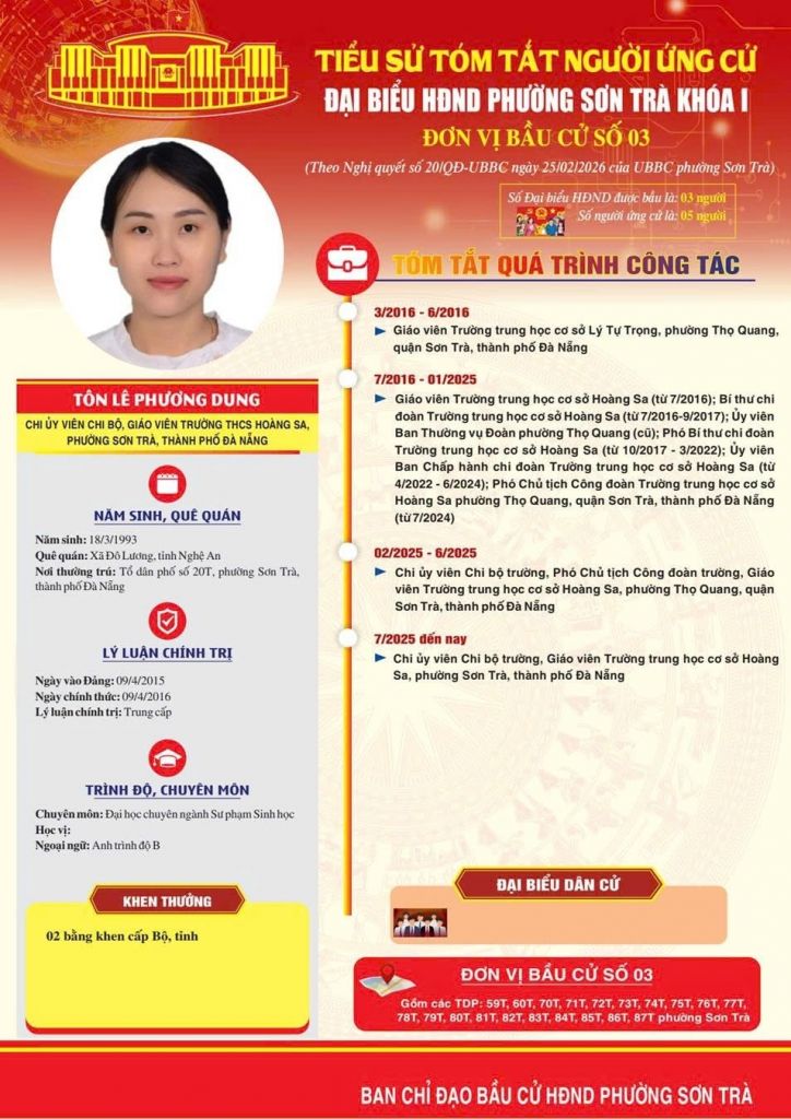 Trường THCS Hoàng Sa vinh dự có 2 ứng cử viên Đại biểu Hội đồng nhân dân Phường Sơn Trà khoá I: