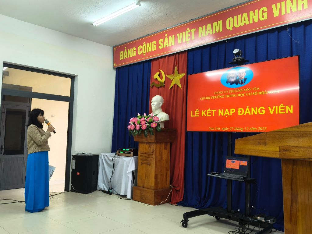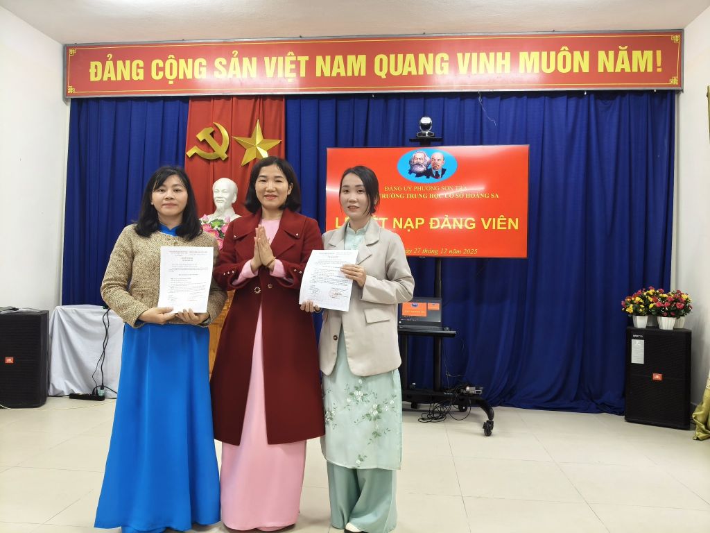 Sáng nay 27/12/2025, Chi bộ Trường THCS Hoàng Sa tổ chức Lễ kết nạp Đảng viên mới cho hai quần chúng ưu tú Lê Thị Hà và Huỳnh Thị Cẩm Loan.