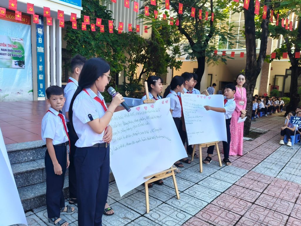 Nhằm nâng cao nhận thức, trang bị kỹ năng sống an toàn cho đội viên, học sinh. Hôm nay, ngày 15/09/2025, cùng với sự tài trợ của Chương trình vùng Sơn Trà, Trường THCS Hoàng Sa đã tổ chức buổi tuyên truyền về phòng chống tai nạn đuối nước và ứng phó với nguy cơ bão lụt cho học sinh.